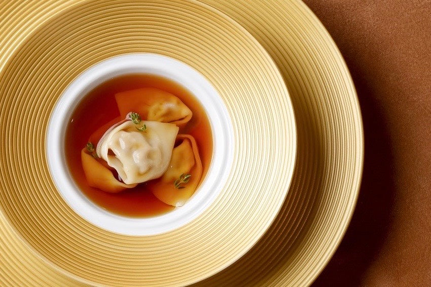 ・蝦夷鹿のコンソメスープ(漆黒軍鶏のラビオリと共に)