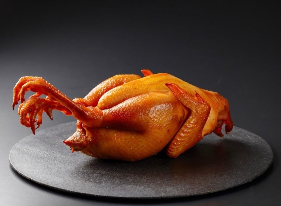 ELEZOの軍鶏を“一羽丸ごと”贅沢に使い、冷燻でじっくりと旨みを閉じ込めたスモークローストに仕立てました。